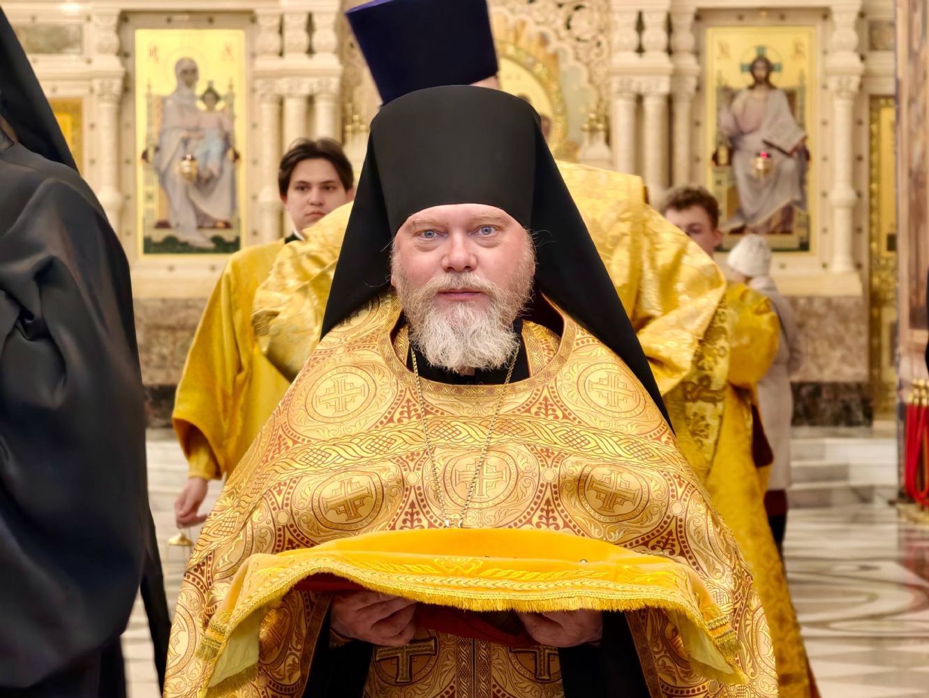 Его Высокопреосвященству сослужили: викарий Владивостокской епархии епископ Уссурийский Иннокентий, протоиерей Игорь Талько, секретарь Владивостокской епархии иерей Илия Талько, благочинный Никольского благочиния иерей Михаил Тутаев, ключарь собора иерей Максим Точуков, благочинный Покровского благочиния иерей Владимир Плотников, духовенство г. Владивостока.