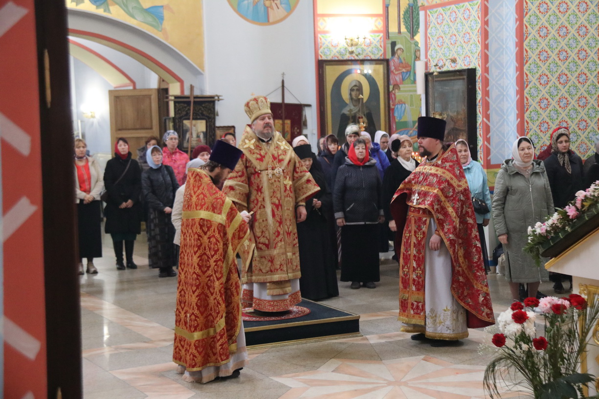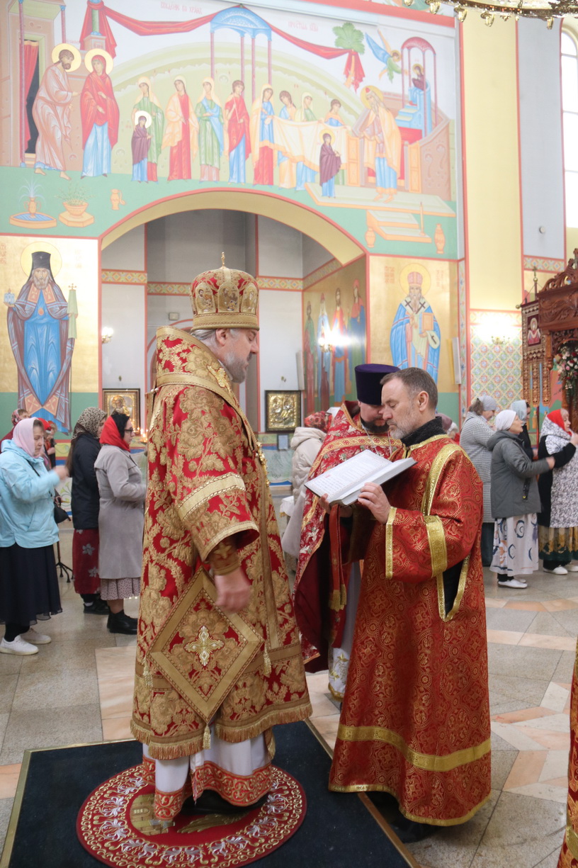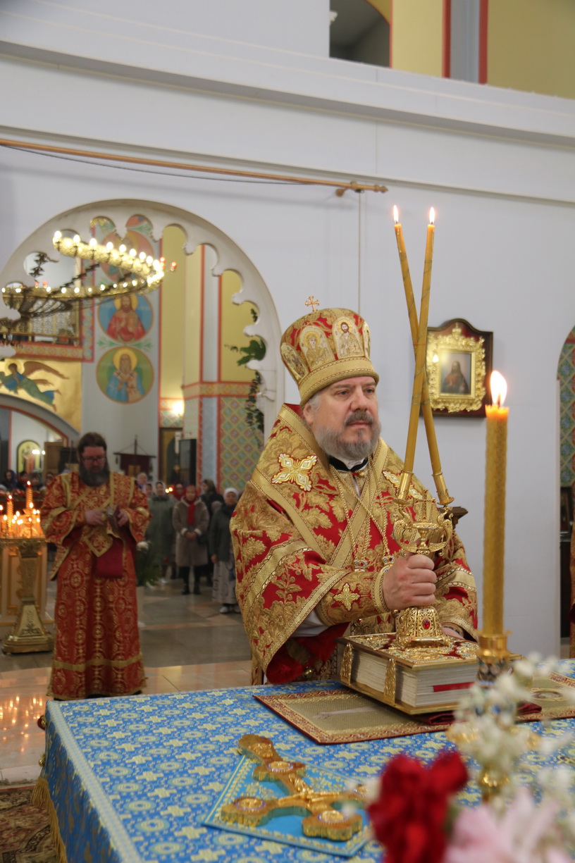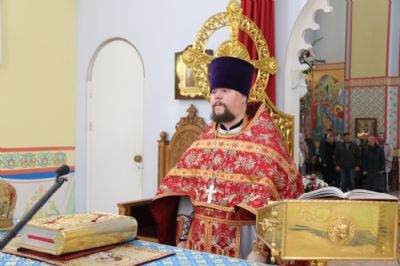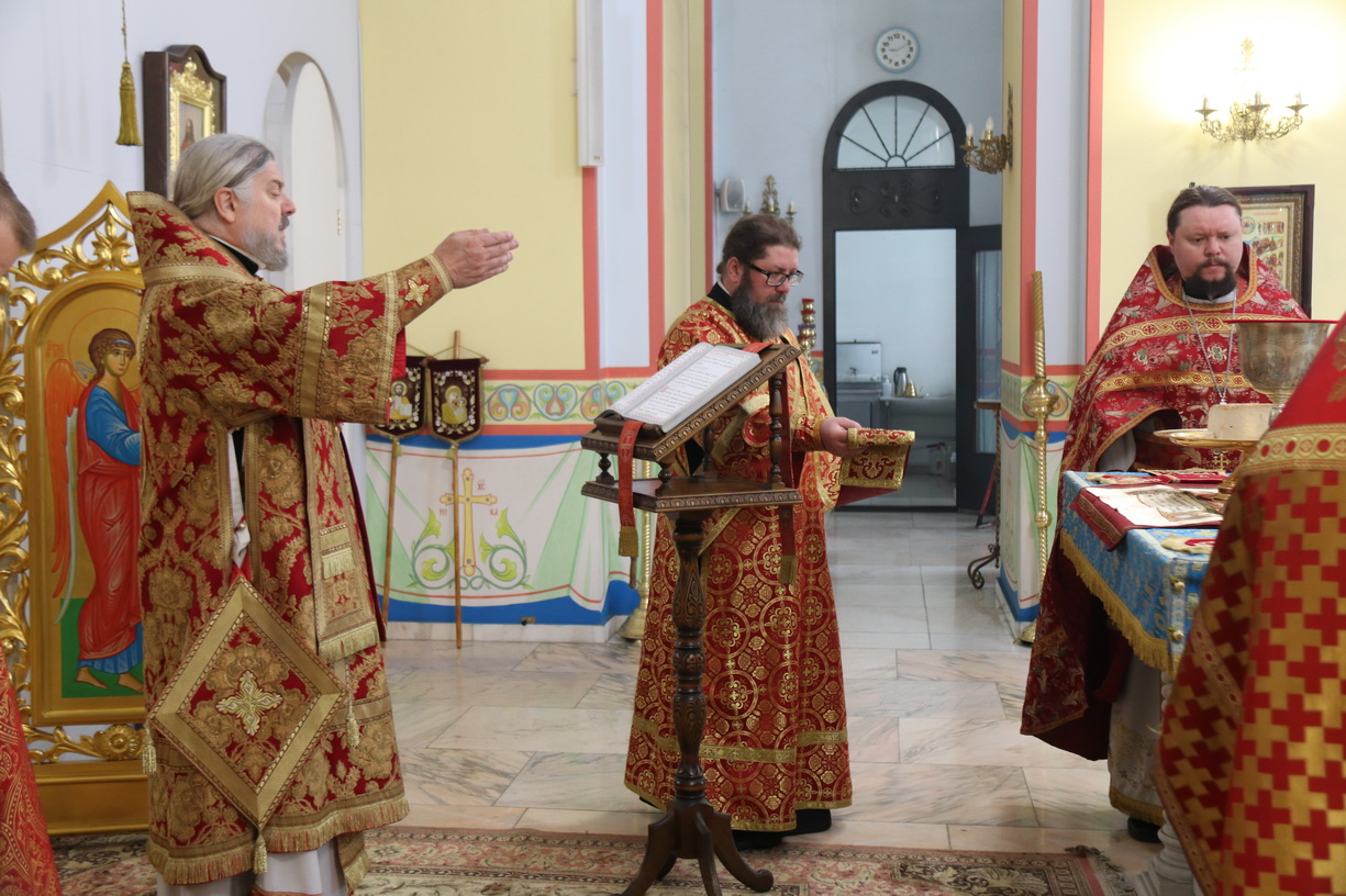 Его Преосвященству сослужили: иерей Виталий Шаркеев; иерей Андрей Попов; иеромонах Ермоген (Крещенко) и иерей Илия Гречишников.