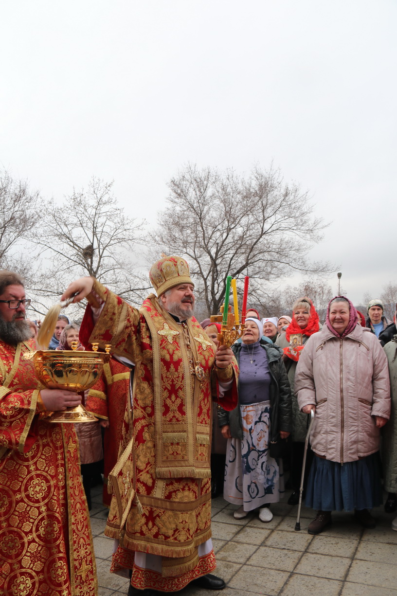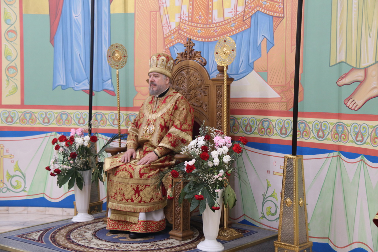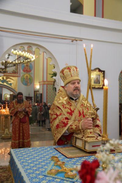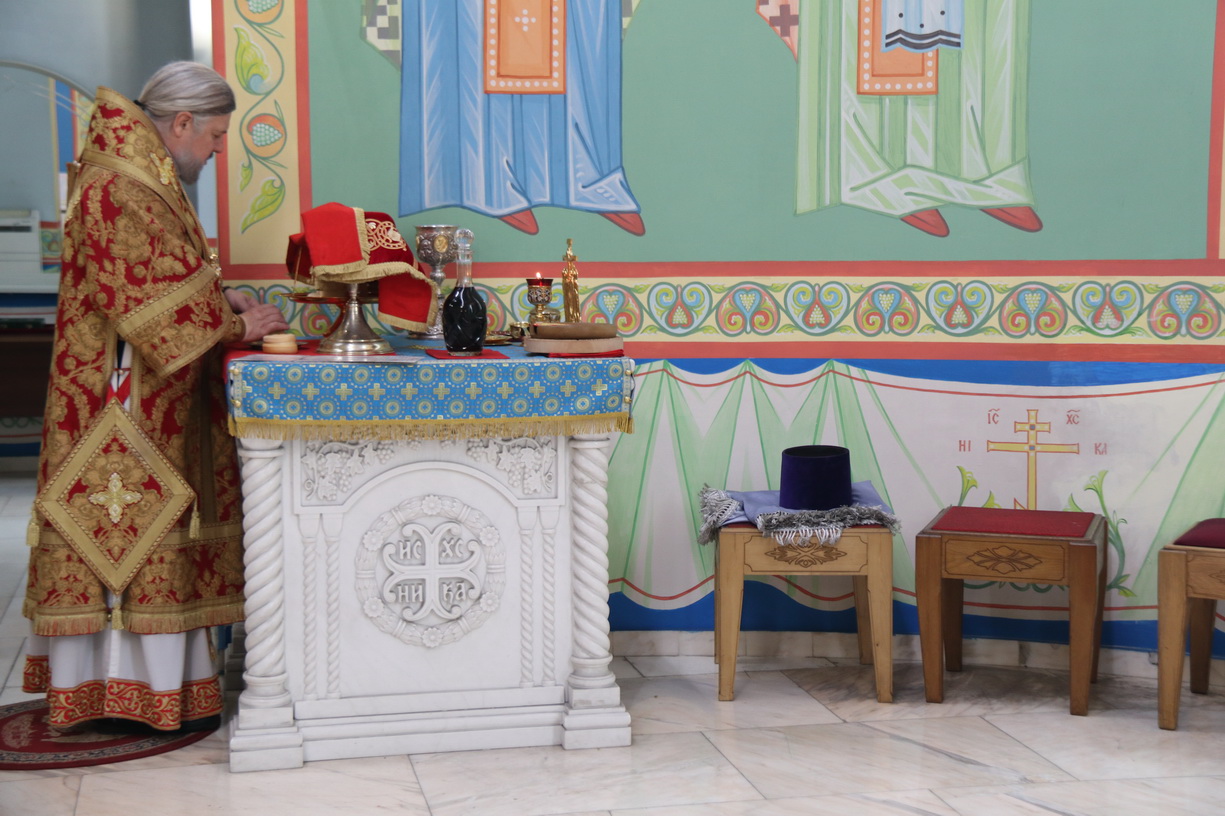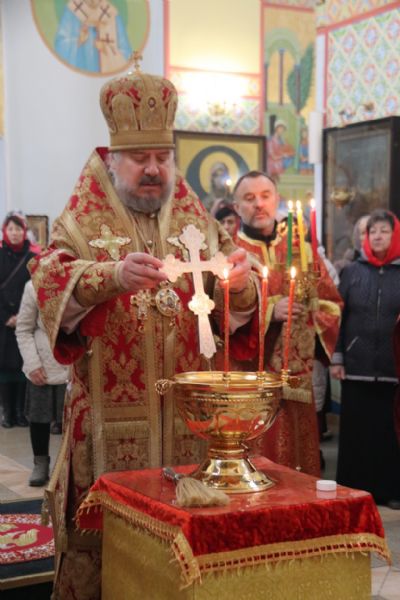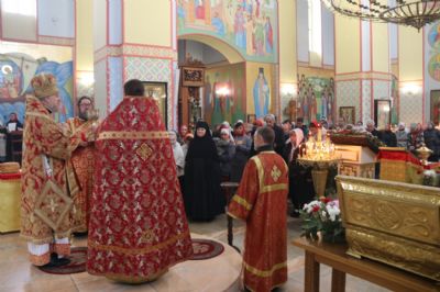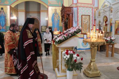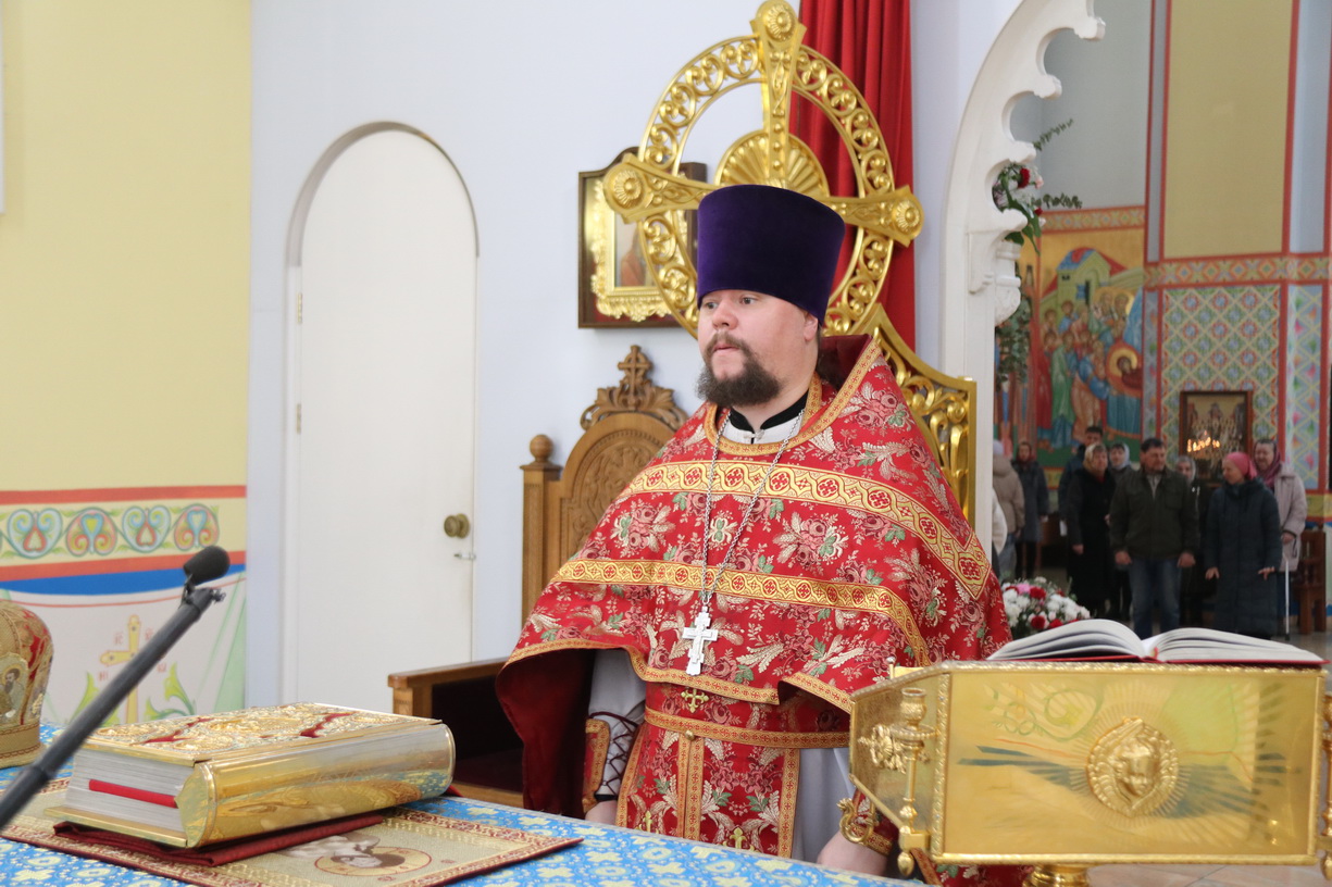 Его Преосвященству сослужили: иерей Виталий Шаркеев; иерей Андрей Попов; иеромонах Ермоген (Крещенко) и иерей Илия Гречишников.
