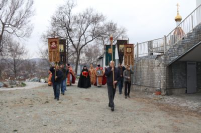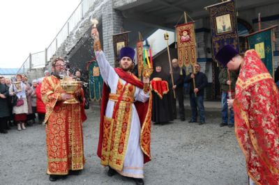 По заамвонной молитве епископ Николай по обычаю совершил водосвятный молебен в честь иконы Божией Матери "Живоносный источник", по окончании молебна епископ Николай возглавил праздничный крестный ход и обратился к прихожанам храма с архиерейским словом, в котором поздравил всех с Пасхой Христовой.