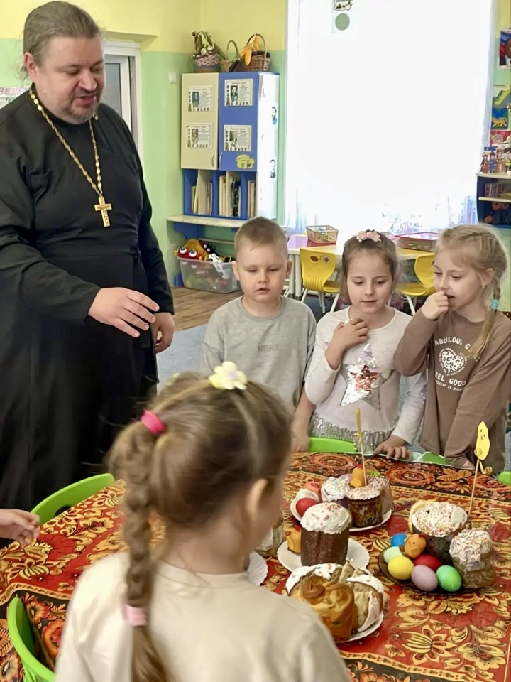 Священник поздравил воспитанников детского сада со Светлой Пасхой.