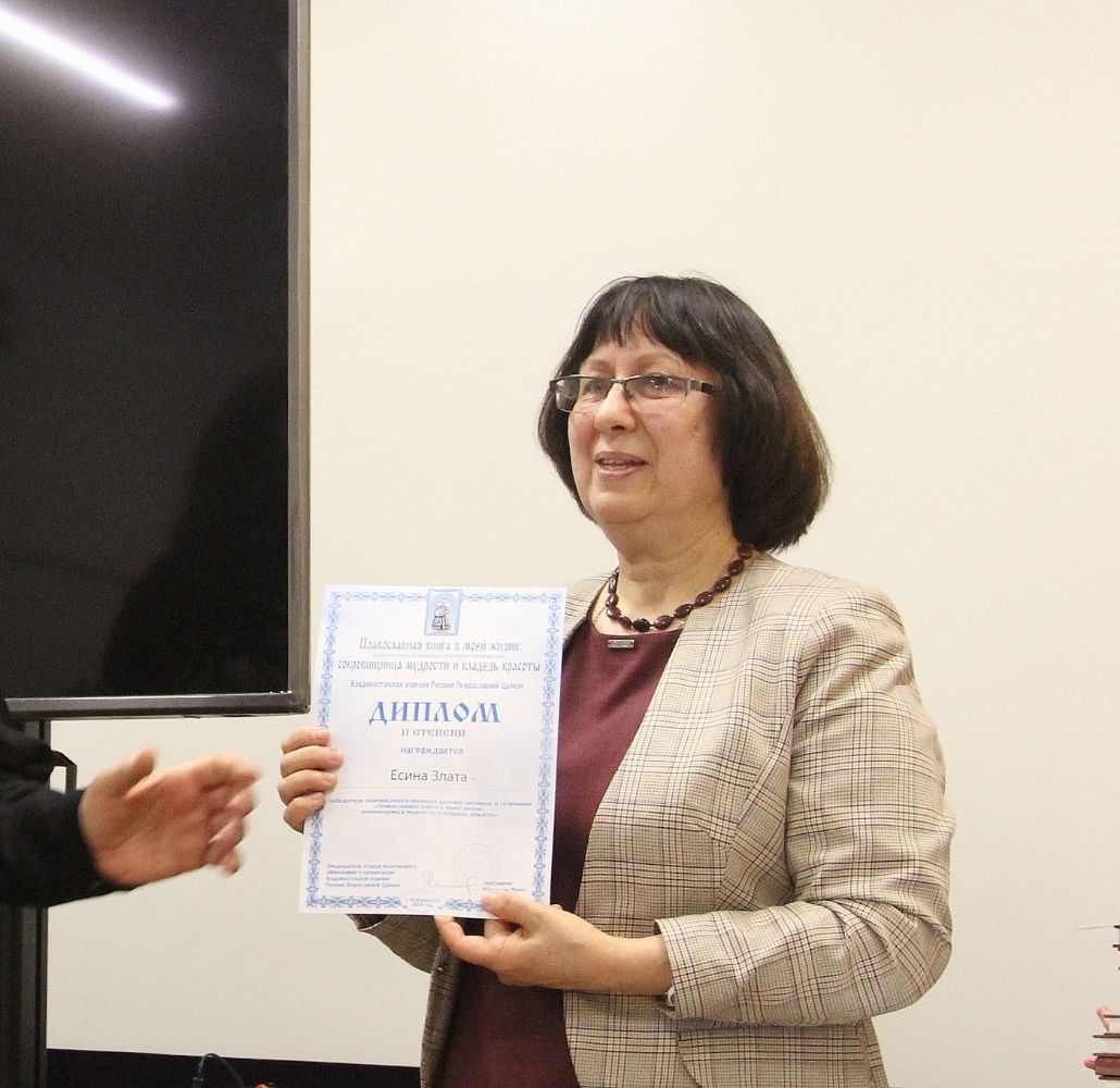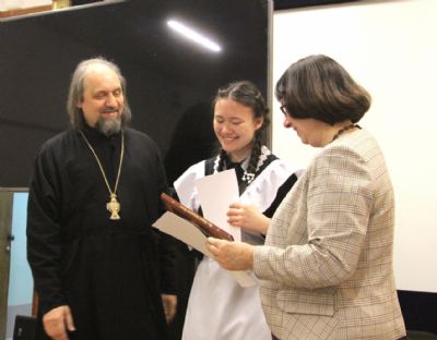 Награды вручали руководитель отдела протоиерей Ростислав Мороз и методист отдела образования, культуролог Елена Дмитриевна Тимошенко.