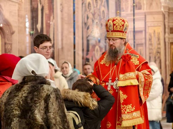 За богослужением архипастырь совершил чин освящения пяти хлебов, вина и елея. Прихожане были помазаны освященным елеем в знак милости Божией ко всем людям.