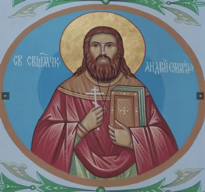 На входной центральной арке в сонме святых изображен наш приморский святой —священномученик Андрей Зимин, его имя включено в Собор новомучеников и исповедников Церкви Русской 4 апреля 2019 года. Уникальная роспись Храма поражает своей красотой.
