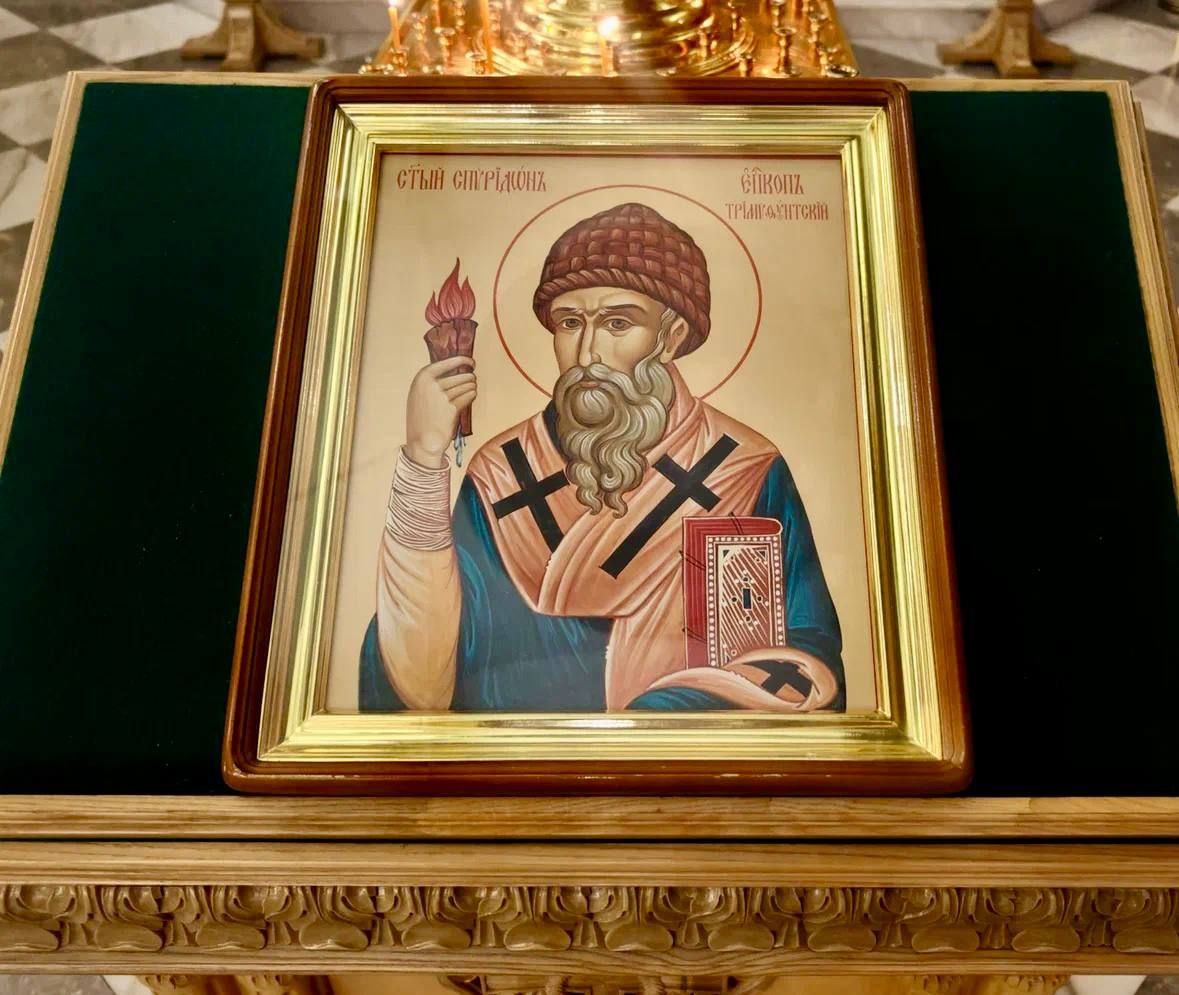 Святитель Спиридон Тримифунтский родился в конце III века на острове Кипр. Известно, что он был пастухом, имел жену и детей. Все свои средства он отдавал на нужды ближних и странников, за это Господь вознаградил его даром чудотворения: он исцелял неизлечимо больных и изгонял бесов. После смерти жены он был избран епископом города Тримифунта. В сане епископа святитель не изменил своего образа жизни, соединив пастырское служение с делами милосердия.