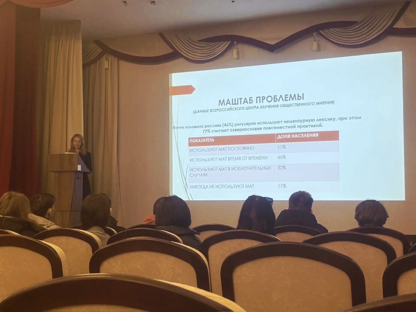 Продолжилась встреча в зале Церковных собраний, где Виктория Дорохина, руководитель АНО «Колыбель», провела беседу о вреде сквернословия. Она отметила, что нецензурная лексика разрушительно влияет на семьи и подрастающее поколение. Её рассказ дополнил тематический фильм, раскрывающий пагубные последствия употребления ругательных слов.