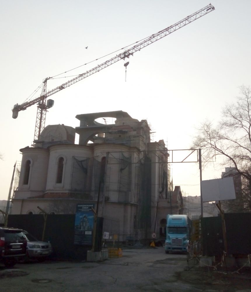 О ходе строительства кафедрального храма Приморья рассказало и известное в крае деловое издание «Золотой Рог»: «Накануне Праздника Светлой Пасхи, который в этом году отмечается 8 апреля, корреспондент Деловой газеты «Золотой Рог» посетил строительную площадку... Как только строители закончат кладку барабанов, можно будет возводить крышу и устанавливать купола. Они заказаны на заводе в городе Волгодонске, и первая партия уже готова и отправлена во Владивосток».