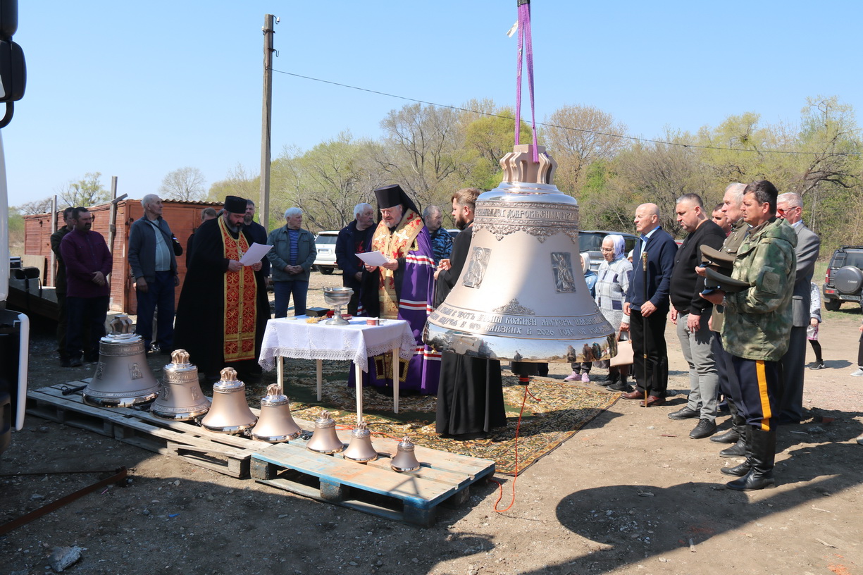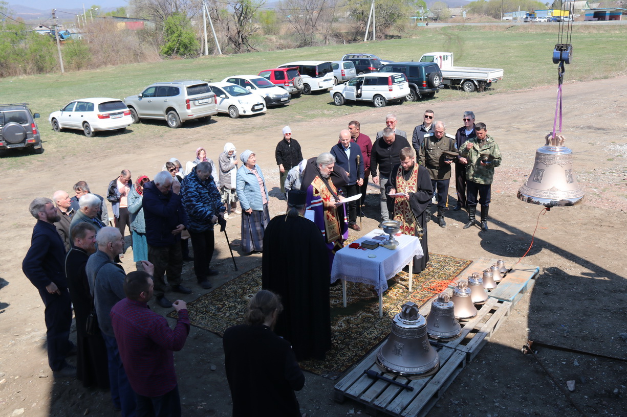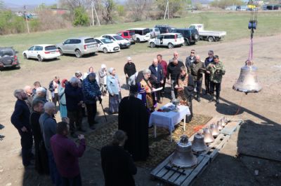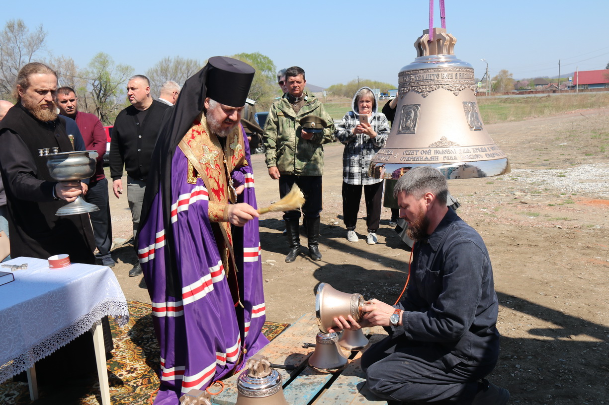 Епископ Находкинский и Преображенский Николай совершил чин освящения колоколов для храма в честь иконы Божией Матери Всецарицы п . Новицкое.