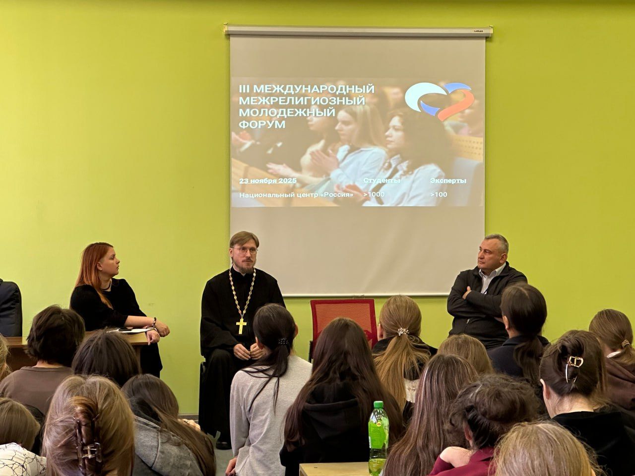 На мероприятии была обсуждена актуальная в наши дни тема: «Вера "за лентой": опыт духовного служения в зоне СВО". Со студентами обсудили смыслы и ценности, которые военные священники стараются донести до солдат в условиях специальной военной операции; познакомили о особенностями духовного окормления военнослужащих в условиях ведения боевых действий.