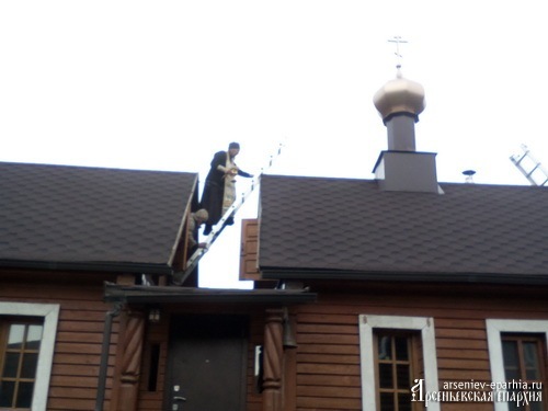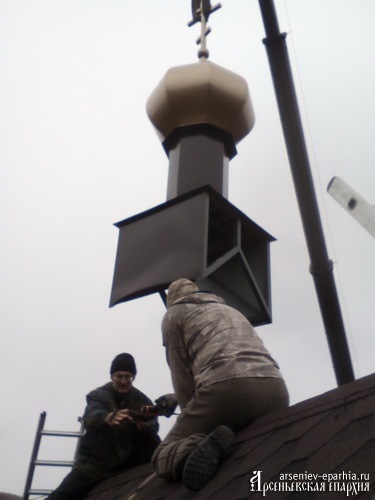 Установка и освящение купола зимнего храма Иоанно-Предтеченского скита ( +Фото)