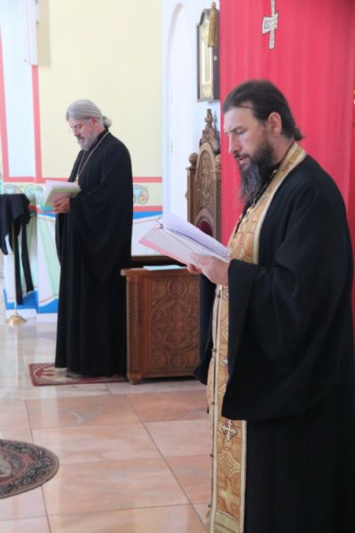 На утрене всенощного бдения, после чтения уставного Евангельского зачала, Владыка помазал духовенство и прихожан освященным елеем.