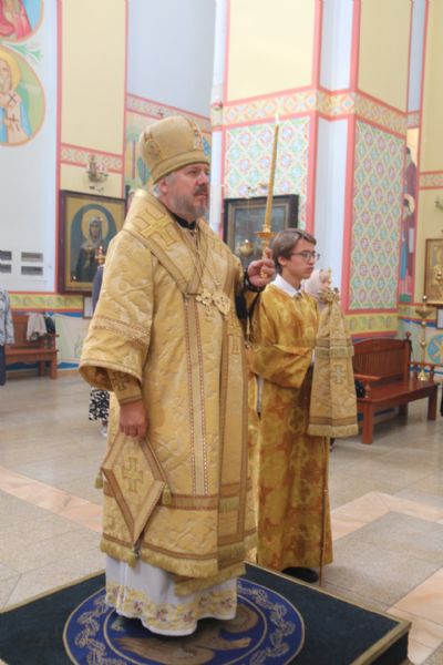 В день перенесения мощей свв. блгвв. кн. Петра и кн. Февронии и Церковного новолетия в Спасо-Преображенском кафедральном соборе состоялась торжественная соборная Литургия