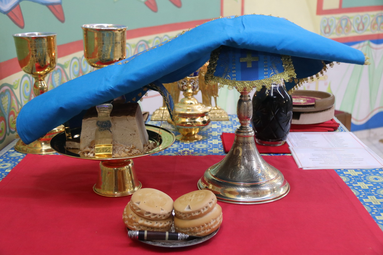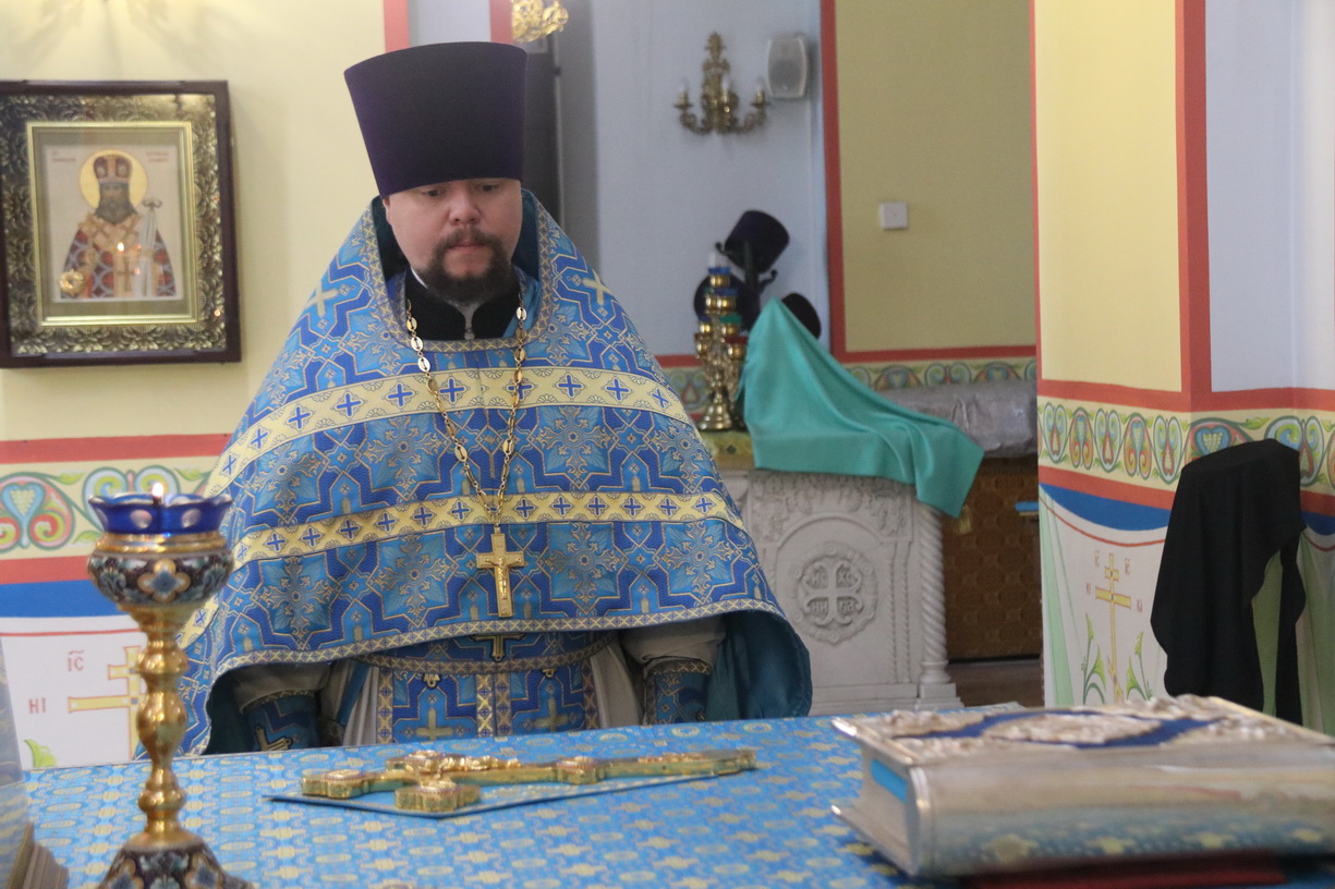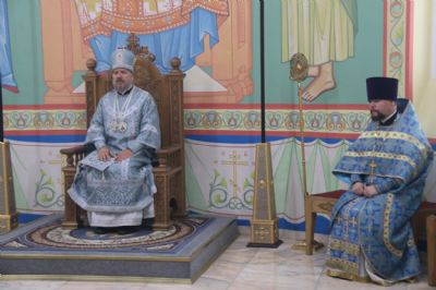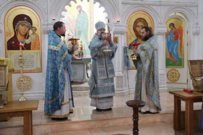 Его Преосвященству сослужили: иерей Виталий Шаркеев; иерей андрей Попов; иерей Иоанн Гречишников.