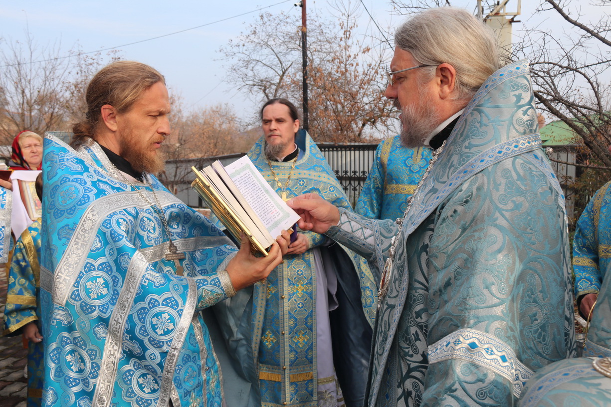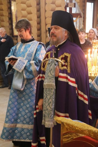 Его Преосвященству сослужили: иерей Алексий Пикулин, настоятель храма в честь Иверской иконы Божией Матери пгт. Смоляниново; иерей Андрей Калнин, благочинный Казанского Кафедрального собора г. Находки; игумен Варнава (Литвин), клирик храма Живоначальной Троицы с. Анисимовка.