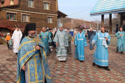 По заамвонной молитве епископ Николай, в сослужении священства, возглавил молебен и праздничный крестный ход, после владыка Николай обратился к присутствующим с архиерейским словом, в котором поздравил всех с престольным праздником Иверского храма, так же архипастырь пожелал всем молитвенного заступничества и помощи Царицы Небесной.