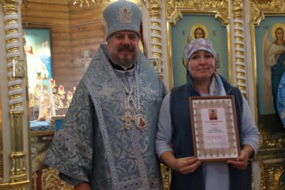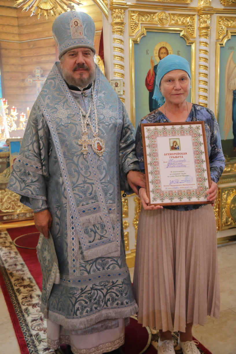 В благословение за усердные труды, и к 20-ти летию образованию прихода Иверской иконы Божией Матери, Владыка вручил Архиерейские и Благодарственные грамоты прихожанам и сотрудникам, которые многие годы трудились и участвовали в благоустройстве и становлении Свято-Иверского храма пгт. Смоляниново.Также всех присутствуюших, стихами и песнями, с престольным праздником храма подравили воспитанники Вокресной школы.