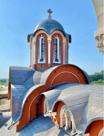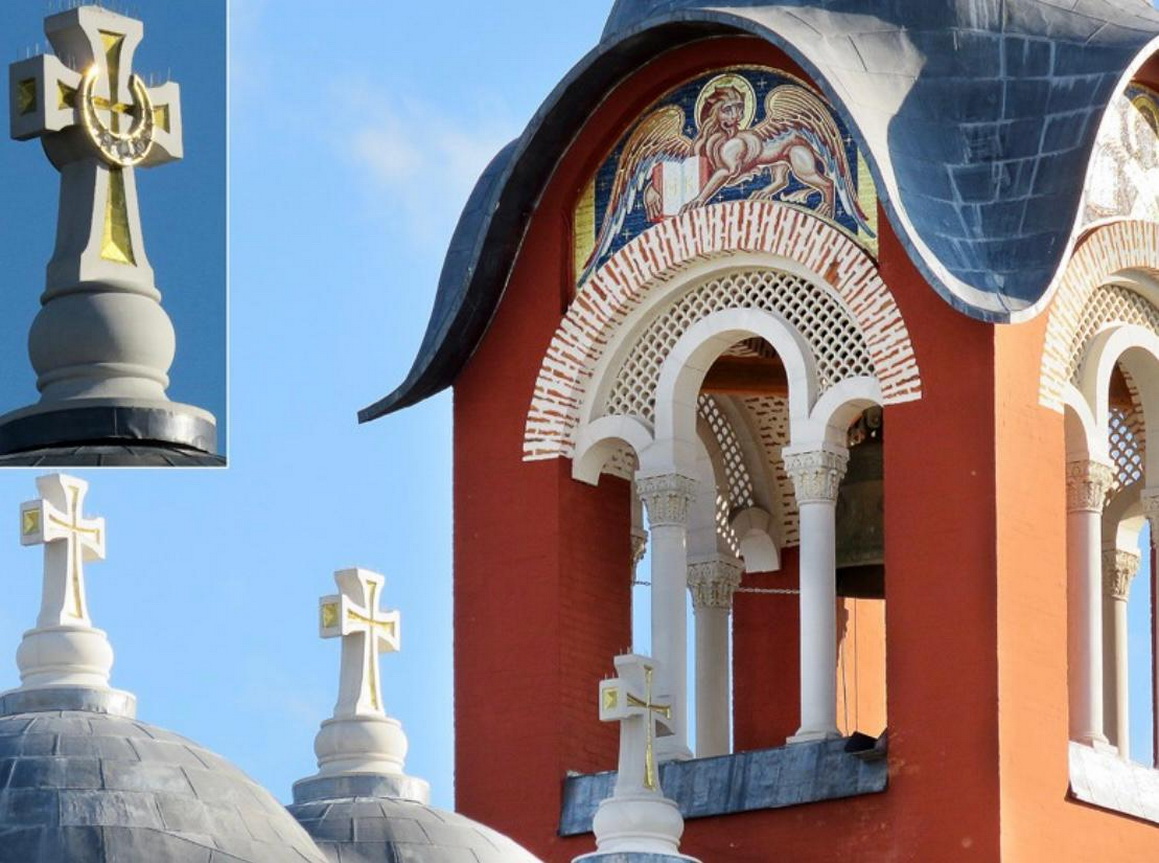 Черное (свинцовое) покрытие куполов выполнено в стиле северных храмов и монастырей. Такое покрытие служит 300-400 лет. Золоченый крест на шлемовидном куполе часовни рядом с храмом — точная копия креста на Успенском соборе во Владимире. Главный колокол звонницы весит около 5 тонн.