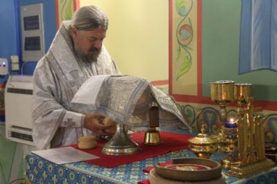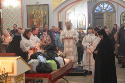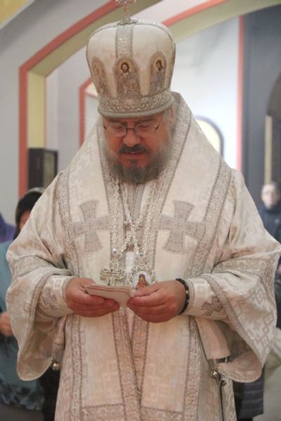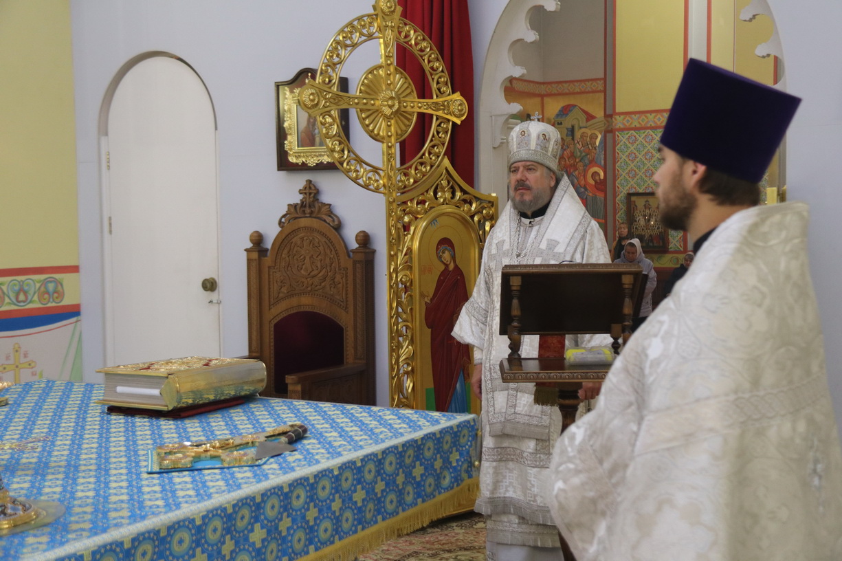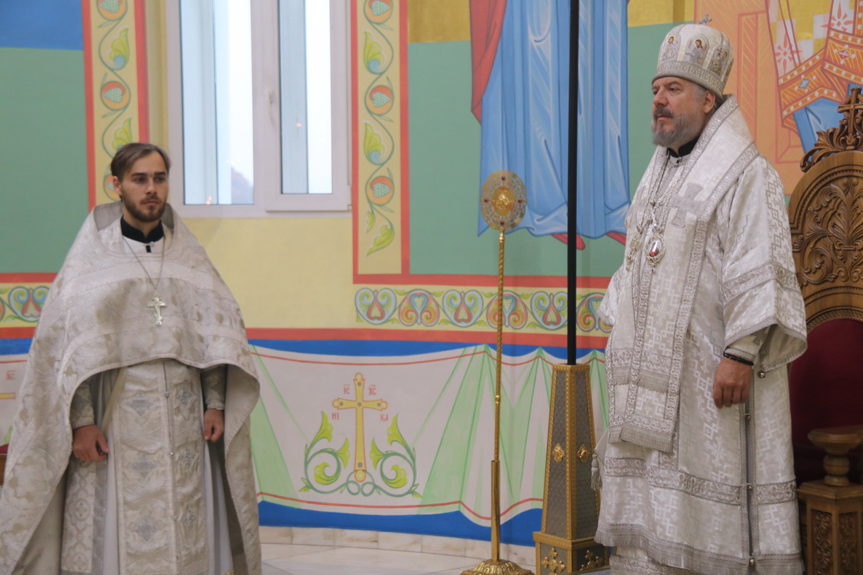 Его Преосвященству сослужили: иерей Виталий Шаркеев, руководитель Епархиального отдела по связями со СМИ; иерей Андрей Попов; иереи Иоанн и Илия Гречишниковы.