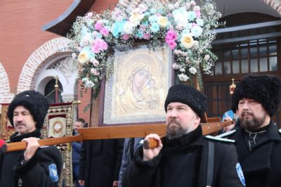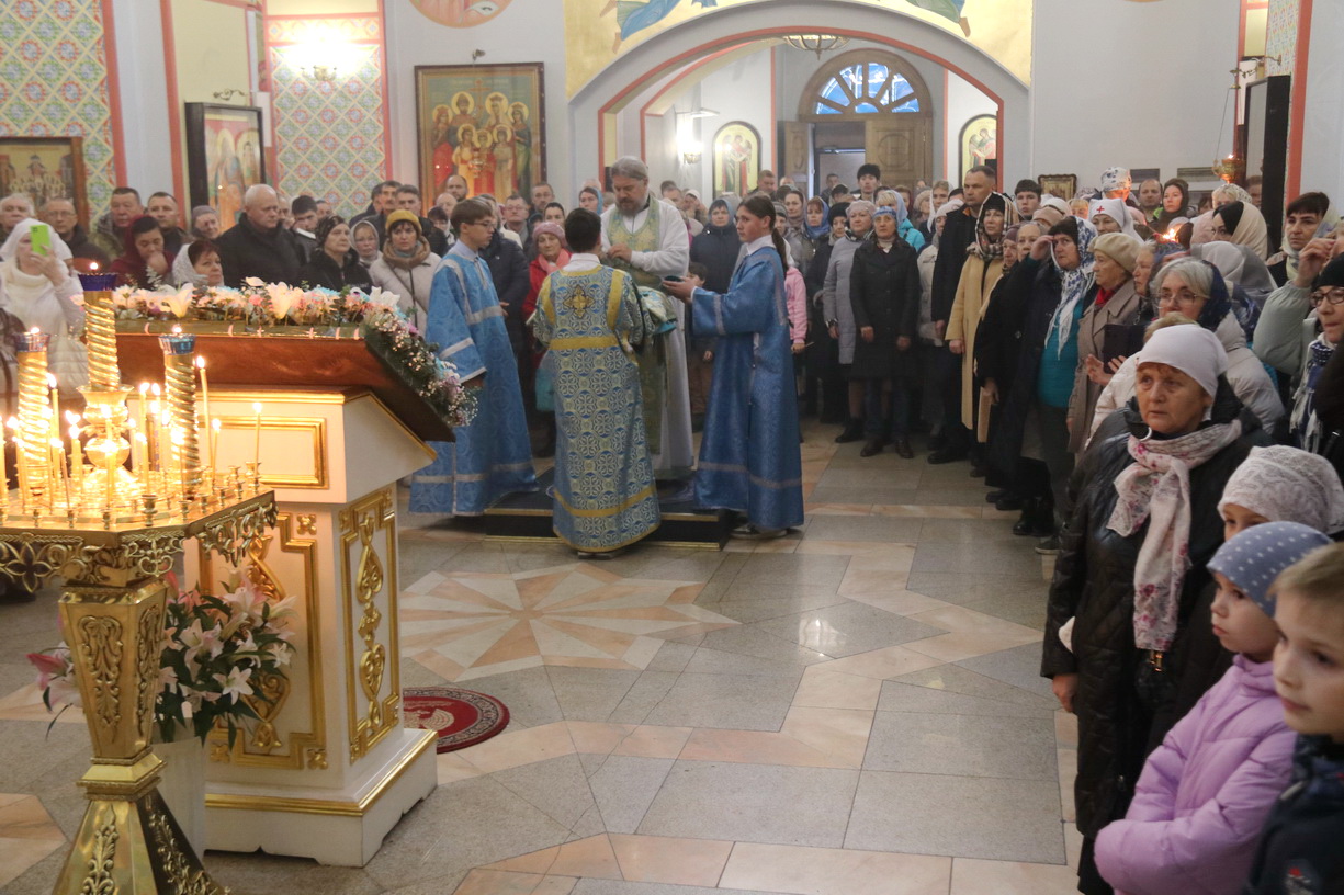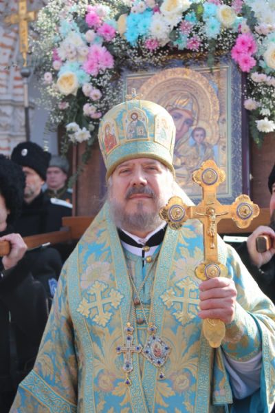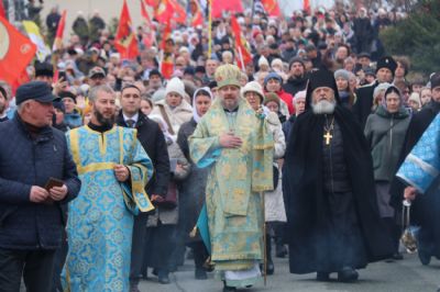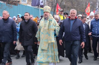 По прибытии Крестного хода в храм прп.Максима Исповедника епископ Николай возглавил праздничный молебен пред образом Казанской иконы Божией Матери. Затем Владыка обратился ко всем присутствующим с архиерейским словом, в котором поздравил горожан с Днём народного единства.