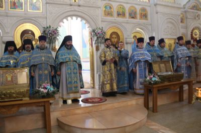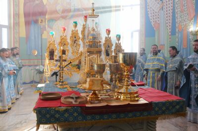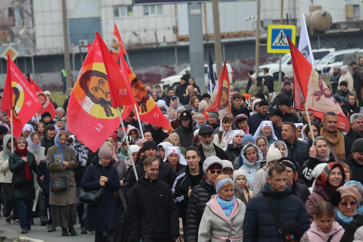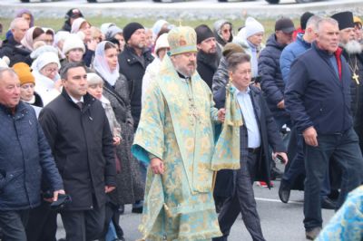 После праздничного богослужения прошел Крестный ход от главного епархиального храма до храма прп. Максима Исповедника на озере Соленом.