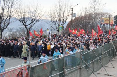 В молитвенном шествии во главе с Владыкой Николаем, епископом Находкинским и Преображенским, приняли участие представители духовенства Находкинской епархии, администрации и думы Находкинского городского округа, ЗАТО г. Фокино и Большого Камня, общественных оранизаций, горожане и гости Находки.