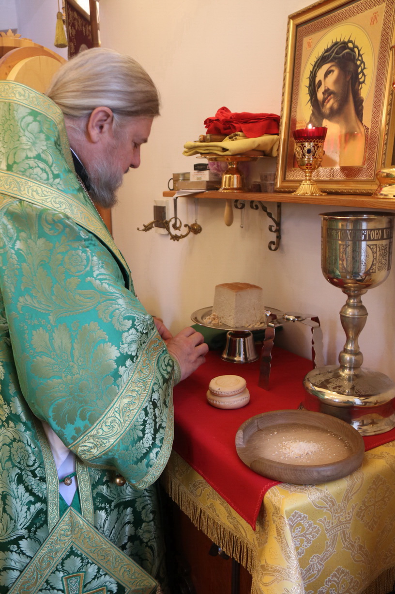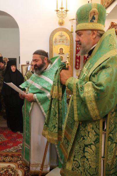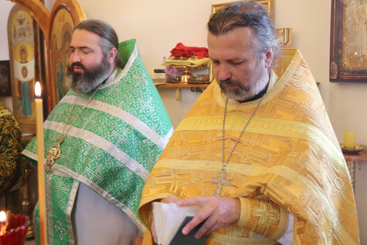 Преосвященнейшему Владыке сослужили: секретарь Находкинской епархии протоиерей Александр Коваленко; иеромонах Силуан (Березовский), благочинный Северного благочиния Находкинской епархии; игумен Варнава (Литвин); иерей Андрей Калнин, ключарь Казанского Кафедрального собора г. Находки; иерей Иоанн Капитанюк, настоятель храма Рождества Христова г. Находки.