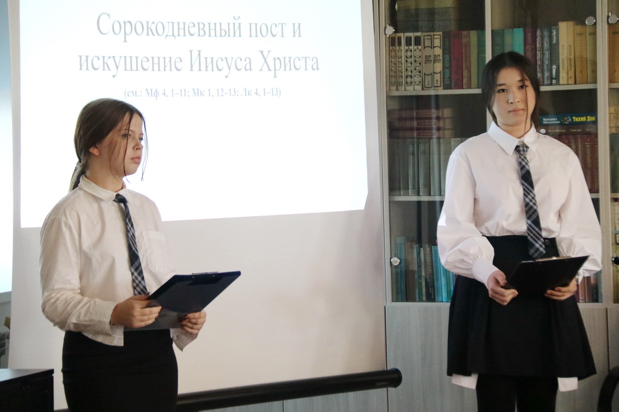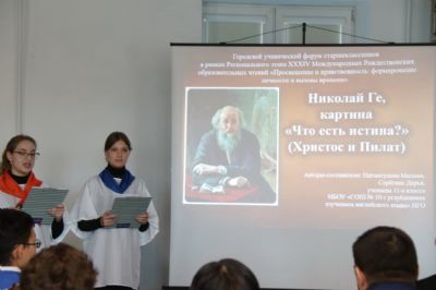 Ребята старших классов школ города расскаазывали о картинах В.Поленова «Христос и грешница», А.Иванова «Явление Христа народу», Н.Крамского «Христос в пустыне», М.Нестерова «Видение отроку Варфоломею» и других. Читали отрывки из Евангелия, на сюжет которых были написаны картины.