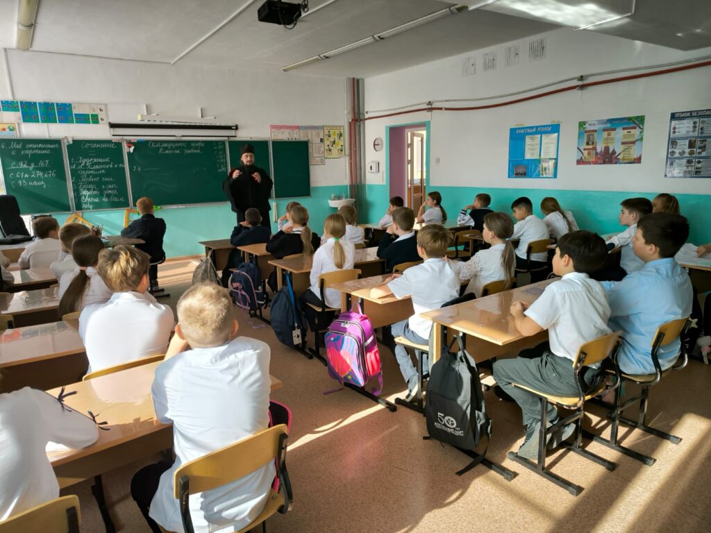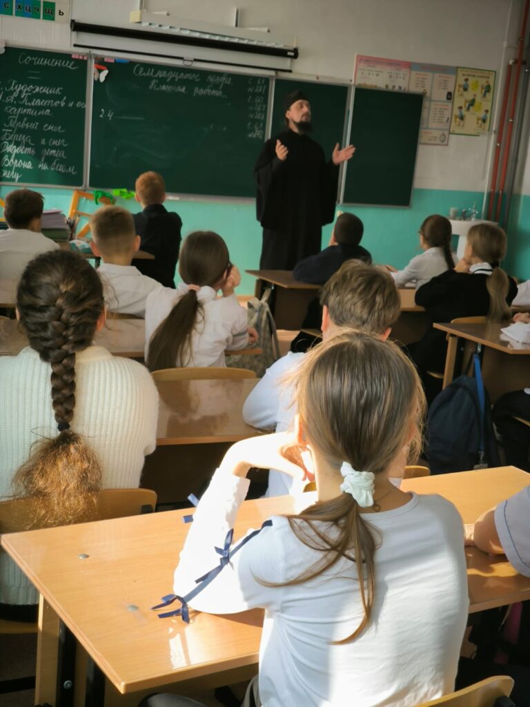 Руководитель отдела Религиозного образования и катехизации Находкинской Епархии иерей Роман Капитанюк по приглашению директора Пановой Татьяны Валерьевны провел урок «Разговоры о важном» в школе № 5 г. Находка.Тема встречи: «Церковь в годы войны». Для...
