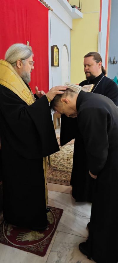 За вечерним богослужением, Владыка совершил постриг во чтеца, Михаила Красильникова, алтарника храма Рождества Христова г. Находки.