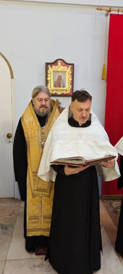 На утрене всенощного бдения, после чтения уставного Евангельского зачала, Владыка помазал духовенство и прихожан освященным елеем.
