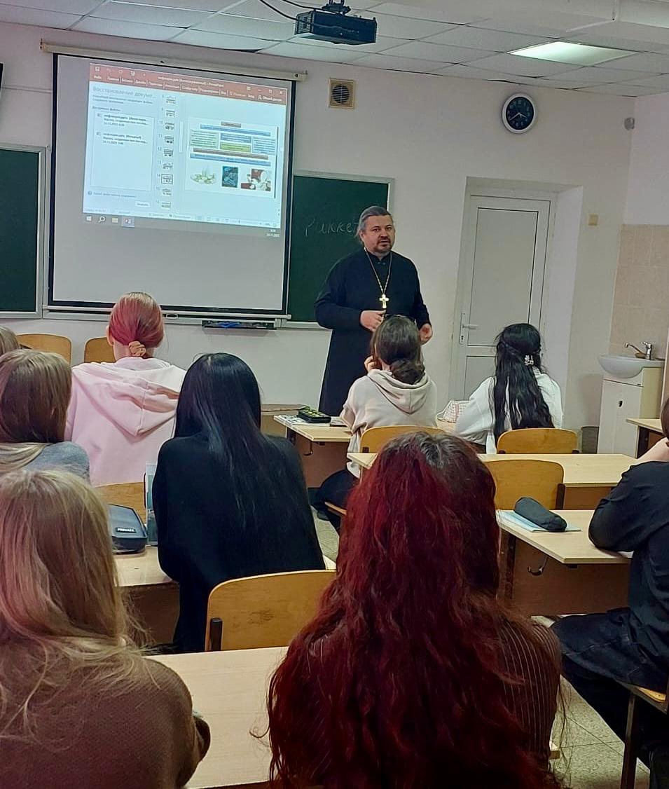 Руководитель миссионерского отдела Находкинской епархии иерей Виталий Шаркеев встретился с учащимися 9 класса школы No 7 г. Находки. Отец Виталий прочитал лекцию «Духовно-нравственные причины конфликта на Украине», рассказав о том, что с исторической точки зрения любое событие имеет череду причинно-следственных связей, которые дают нам ориентиры в оценке переживаемых событий. Важно объективно оценивать причины сложившейся ситуации.