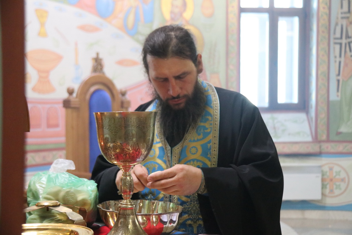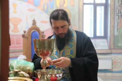 На утрене всенощного бдения, после чтения уставного Евангельского зачала, Владыка помазал духовенство и прихожан освященным елеем.