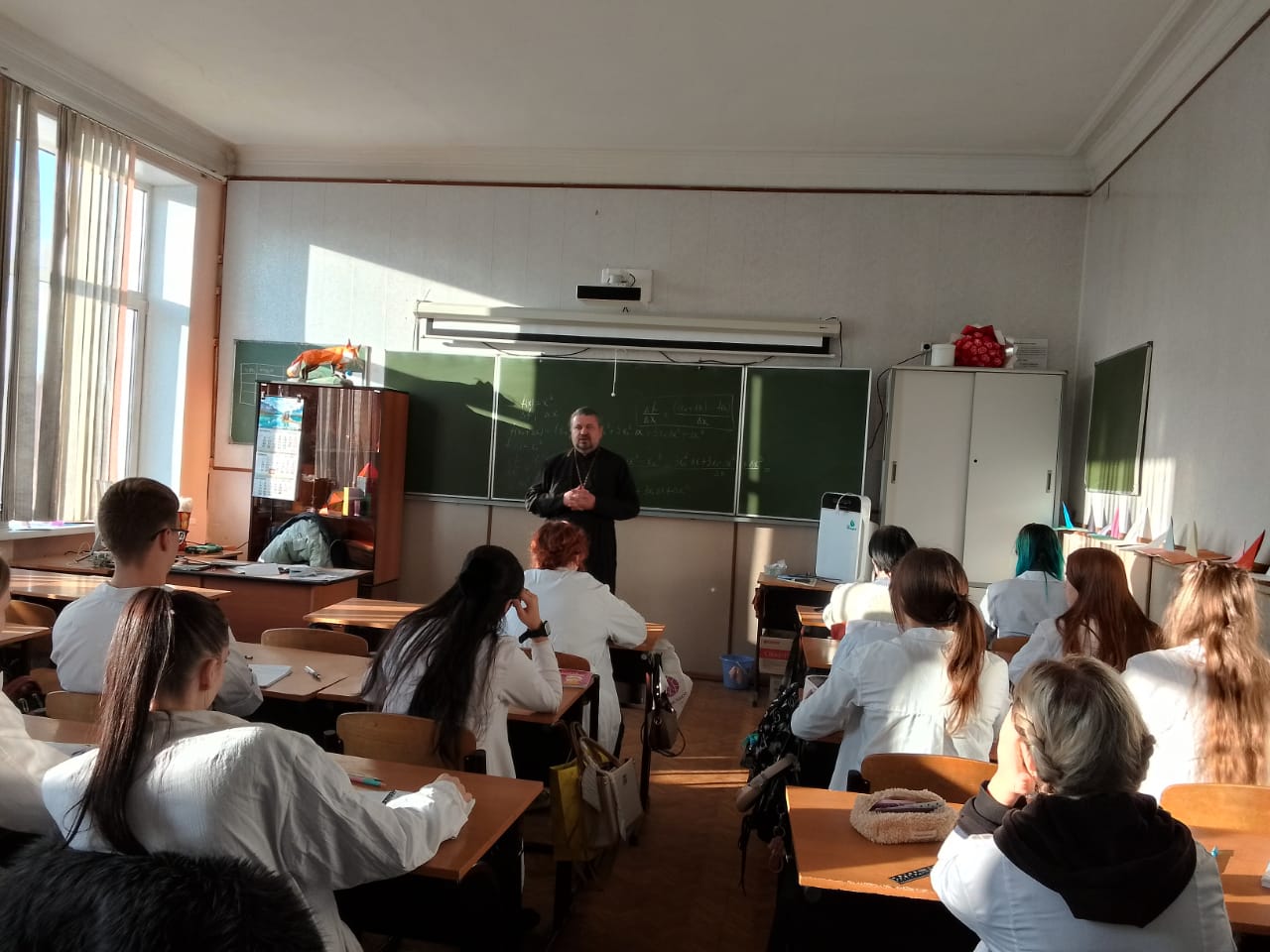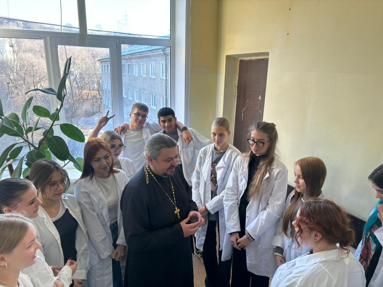 Иерей Виталий Шаркеев провел лекцию «Добрачные отношения» для студентов, обучающихся по специальности «Сестринское дело» Находкинского государственного гуманитарно-технического колледжа.