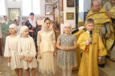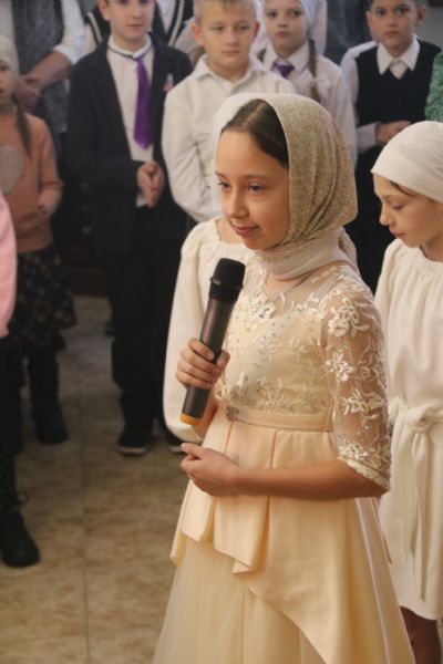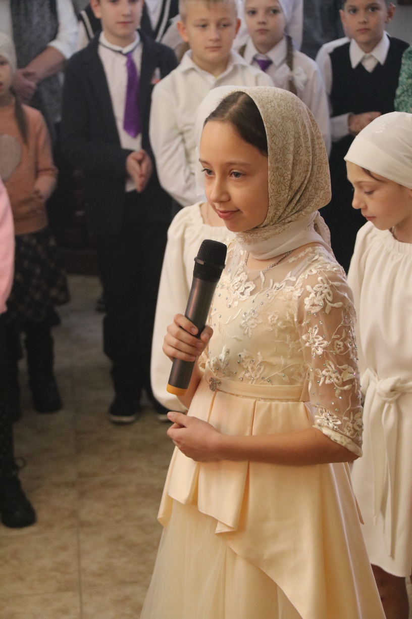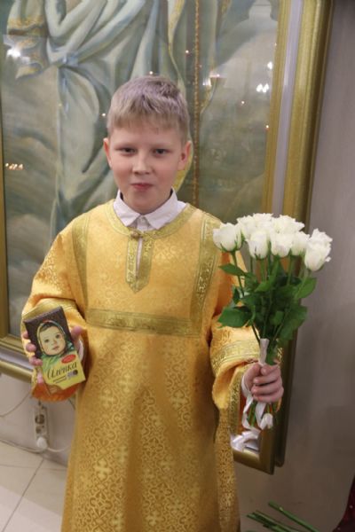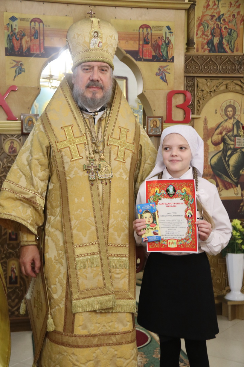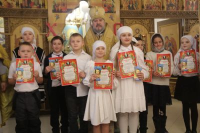 Поздравление в стихах для архипастыря подготовили воспитанники Воскресной школы Никольского храма. Так же, учащиеся Воскресной школы, участники Общероссийской олимпиады школьников "Основы православной культуры", были награждены архиерейскими благодарственными письмами.