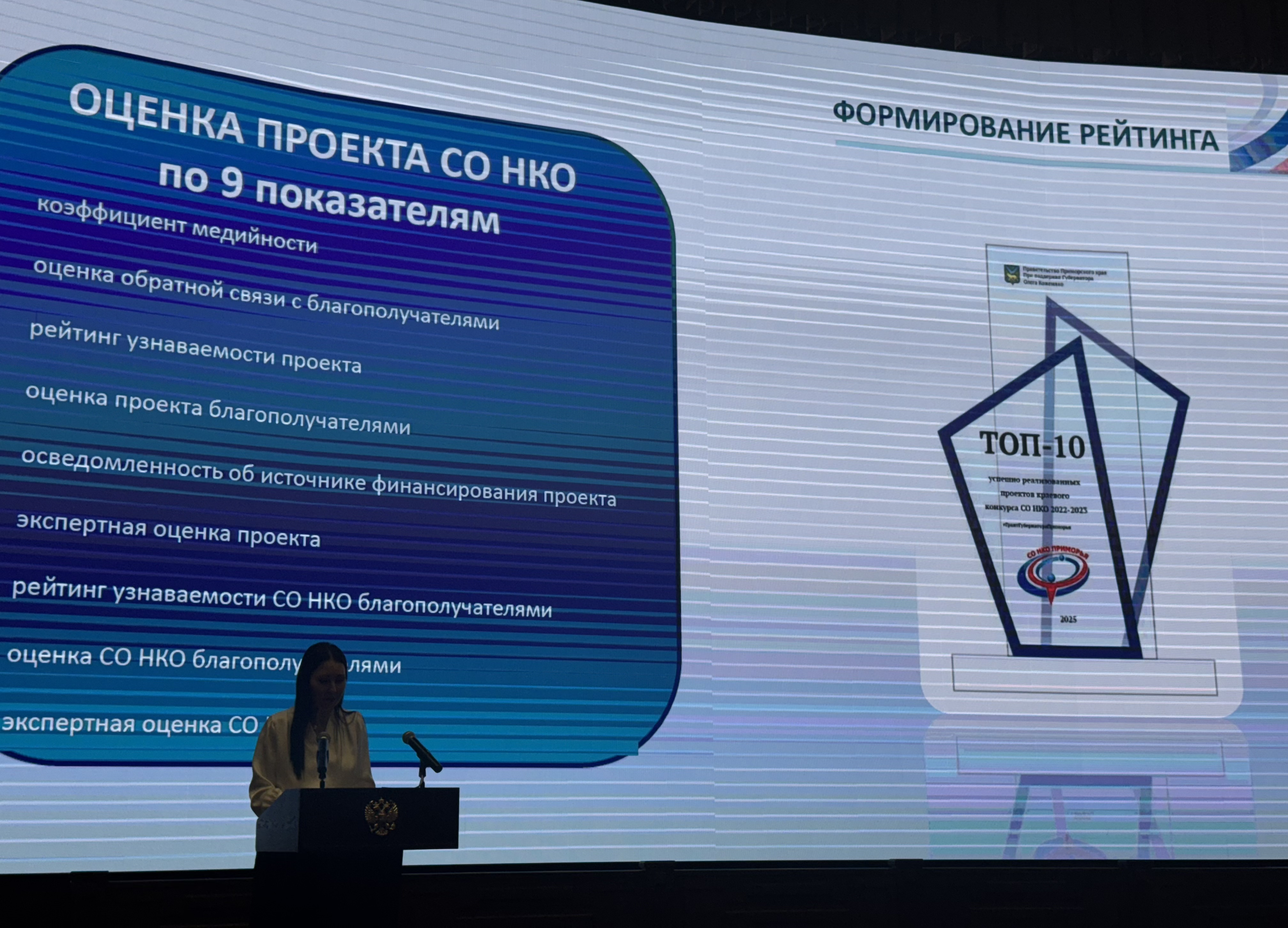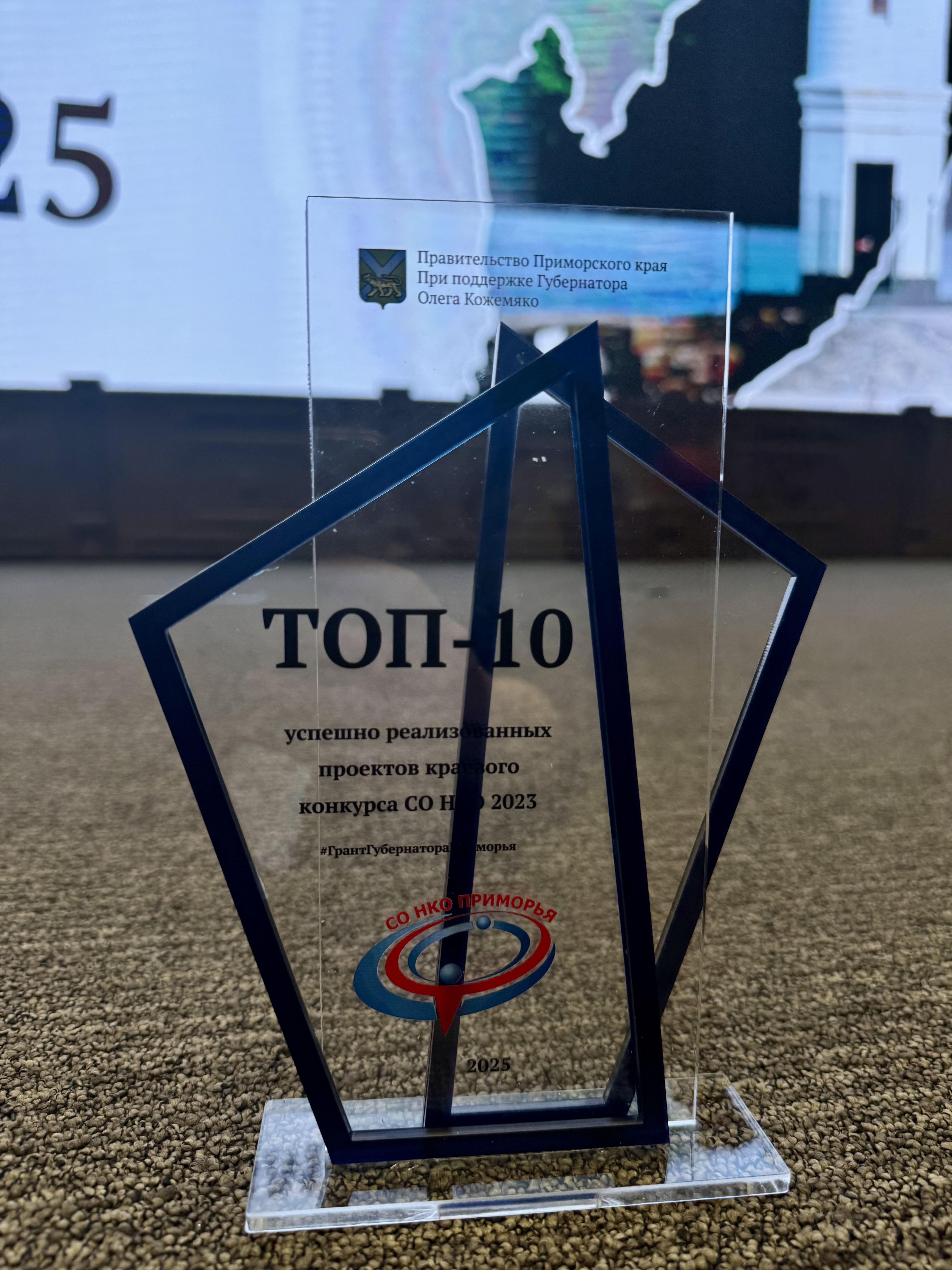 В ходе церемонии руководителю проекта «Моя творческая мама» Паначевой Эльвире Анатольевне были вручены диплом и памятный знак победителя ТОП-10 социальных проектов Приморского края, победивших в конкурсах СО НКО (социально ориентированных некоммерческих организаций).