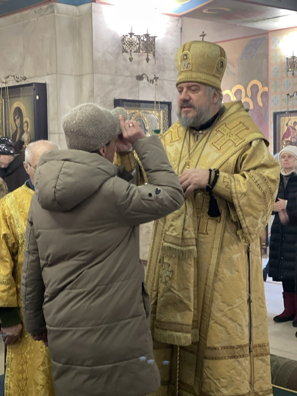 На утрене всенощного бдения, после чтения уставного Евангельского зачала, Владыка помазал духовенство и прихожан освященным елеем.