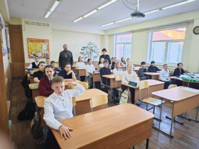 Руководитель миссионерского отдела иерей Виталий Шаркеев рассказал учащимся СОШ № 12 6 «б» класса г. Находки о Рождестве Христовом: смысл, историю, традиции.