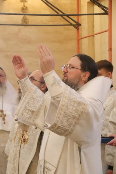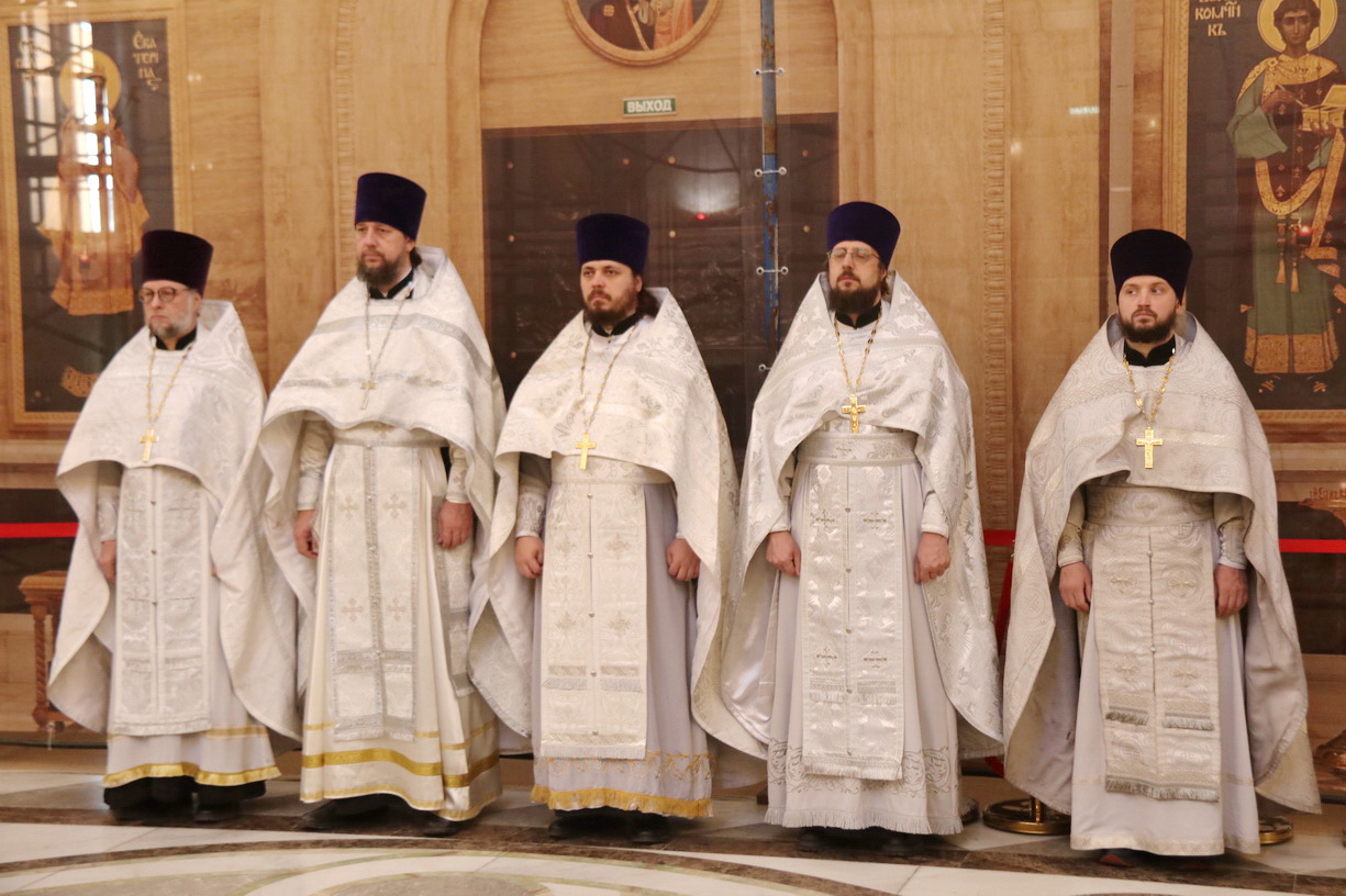 Архипастырям сослужили: протоиерей Игорь Талько, секретарь Владивостокской епархии иерей Илия Талько, ключарь Спасо-Преображенского собора иерей Максим Точуков, ответственный за сестричество социального отдела епархии протоиерей Александр Талько, протоиерей Максим Романенко, руководитель отдела епархиального религиозного образования и катехизации протоиерей Ростислав Мороз, игумен Антоний (Каменчук), протоиерей Вадим Маишев, протоиерей Даниил Нефедьев, протоиерей Андрей Калчев, протоиерей Димитрий Федорин, благочинные благочиний Владивостокской епархии и духовенство епархии.
