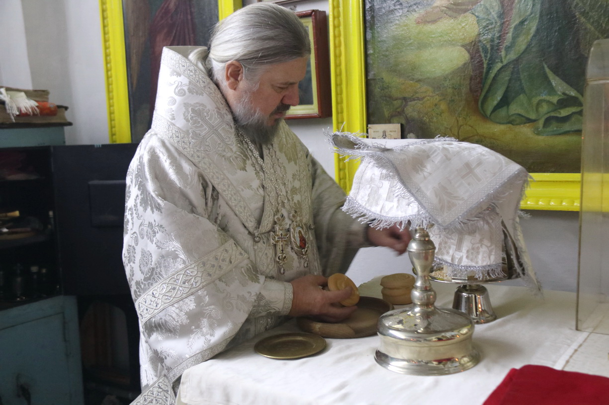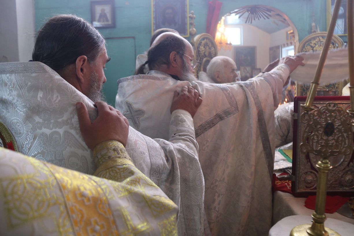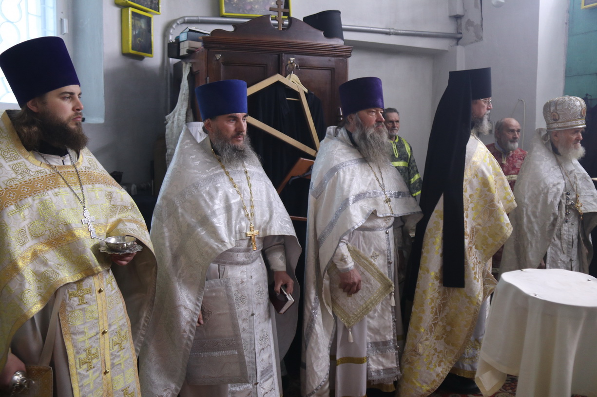 Его Преосвященству сослужили: митрофорный протоиерей Василий Кабанов, настоятель храма Рождества Пресвятой Богородицы, г. Партизанска; иеромонах Силуан (Березовский), настоятель храма Сретения Господня г. Партизанска; игумен Пимен (Литовкин), наместник Свято-Троицкого-Николаевского мужского монастыря п. Горные Ключи (пгт.Шмаковка); протоиерей Андрей Гречишников, настоятель Свято-Успенского храма с.Владимиро-Александровское; протоиерей Павел (Петрунин), настоятель храма Казанской иконы Божией Матери с.Казанка; иерей Андрей Калнин, ключарь Казанского Кафедрального собора г. Находки; иерей Иоанн Гречишников, настоятель храма Живоначальной Троицы п. Врангель; иерей Сергий Вовк, клирик Рождества-Богородицкого храма г. Партизанска; иеромонах Ермоген (Крещенко), клирик Казанского собора г. Находки.