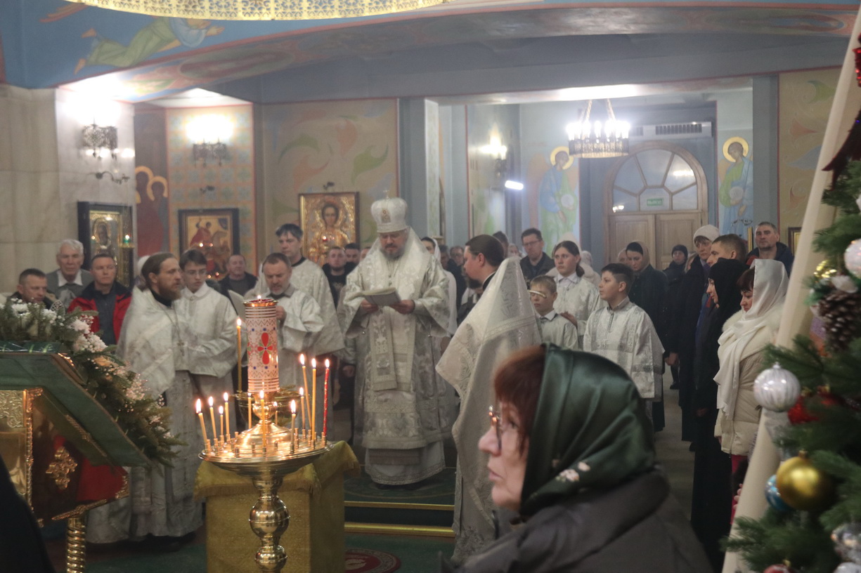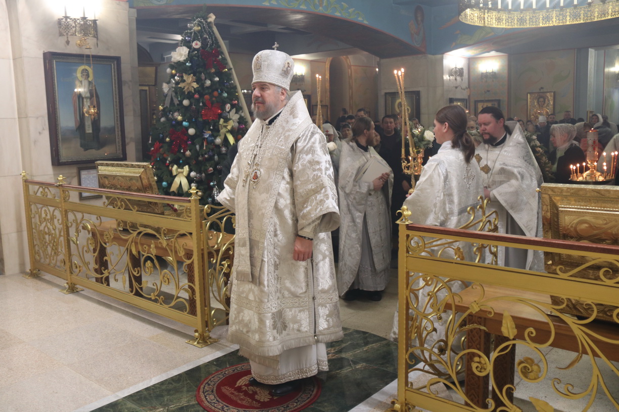 В ночь с 18 на 19 января 2026 года, в праздник Крещения Господа Бога и Спаса нашего Иисуса Христа, в Кафедральном соборе в честь Казанской иконы Божией Матери г. Находки епископ Находкинский и Преображенский Николай совершил ночную Божественную литургию свт. Василия Великого и чин Великого освящения воды.