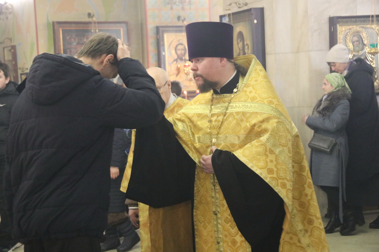 Послу чтения уставного Евангельского зачала духовенсто и прихожане храма были помазаны освященным елеем.