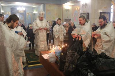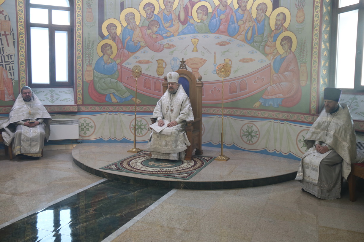 В завершение богослужения духовенством была совершена Великая панихида. Затем Владыка обратился к верующим с архипастырским словом.