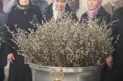 На утрене, после чтения уставного Евангелия и 50 псалма, епископ Николай совершил традиционное освящение вербных и пальмовых ветвей (ваий) и помазал верующих освященным елеем.