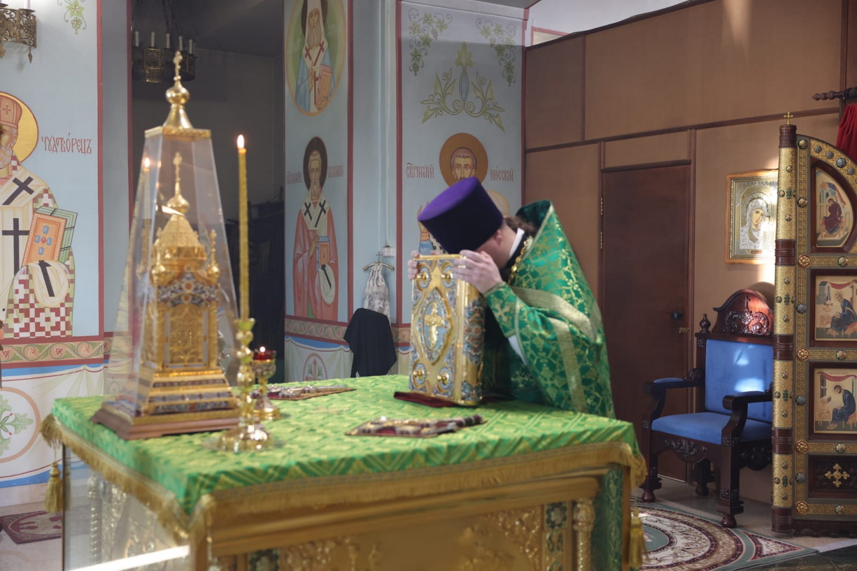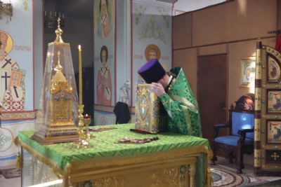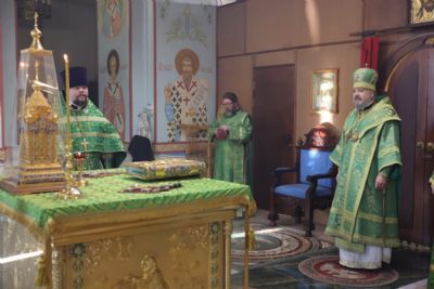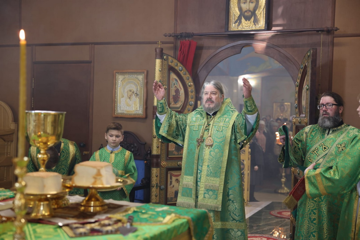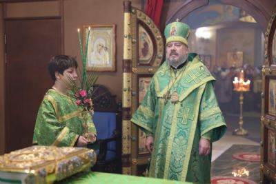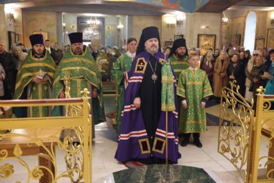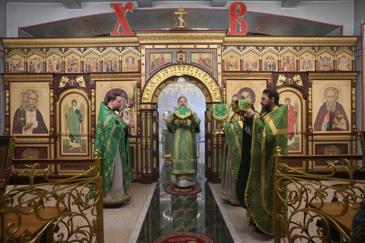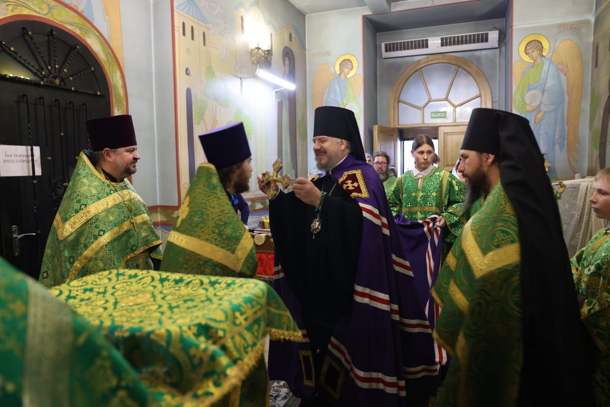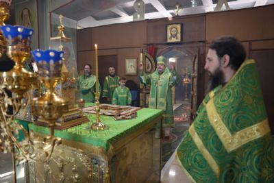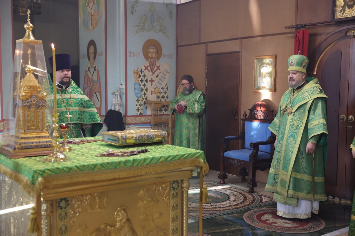 Его Преосвященству сослужили: иерей Виталий Шаркеев; иерей Андрей Попов; иеромонах Ермоген (Крещенко); иерей Илия Гречишников.