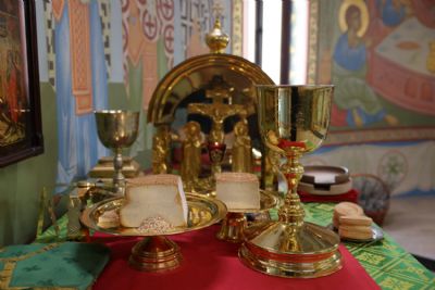 За богослужением более 300 прихожан храма причастилсь Святых Христовых Таин.