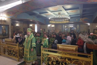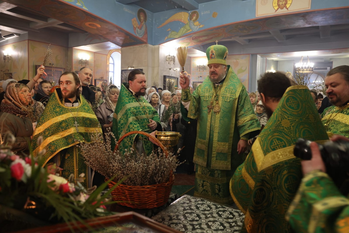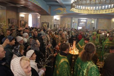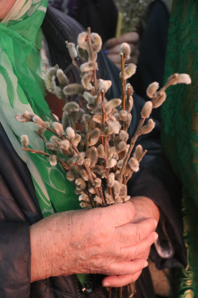 По заамвонной молитве епископ Николай, в сослужении священства, совершил праздничное освящение вербы и обратился к верующим с архиерейским словом: