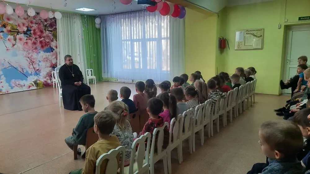 Священник провел беседу о Пасхе в детском саду.