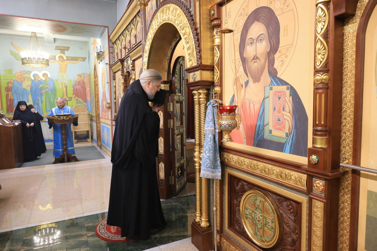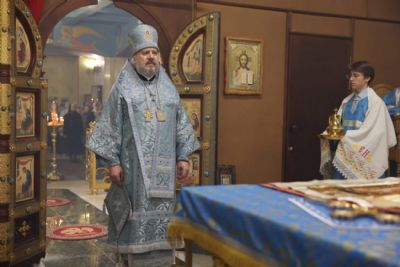 По заамвонной молитве епископ Николай, в сослужении священства, возглавил праздничное славление, после владыка Николай обратился к присутствующим с архиерейским словом.