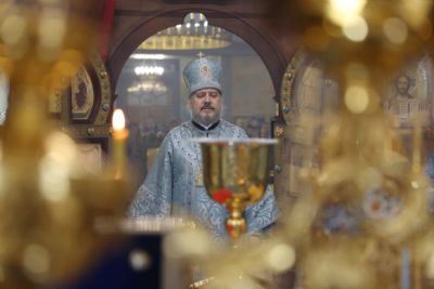 В праздник Благовещения Пресвятой Богородицы, епископ Находкинский и Преображенский Николай совершил Божественную литургию святителя Иоанна Златоуста в Кафедральном Казанском соборе г. Находки.