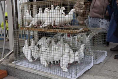 По окончании богослужения Преосвященный Николай, с паперти верхнего храма, выпустил в небо над Кафедральным собором белых голубей.